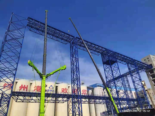 6月16日,下午15时,由一分公司承建的锦州港粮食物流一期项目顺利完成大型钢结构吊装的重大节点。