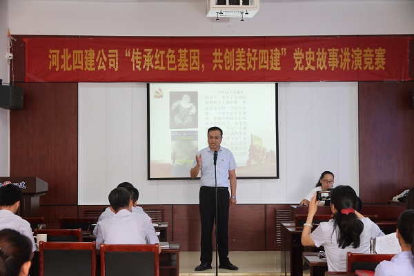 中国共产党百年华诞激动人心。为共忆红色岁月、传承时代初心,6月28日下午,公司在四楼活动室举行了“传承红色基因,共创美好四建”主题党史故事讲演竞赛,经层层选拔胜出的26名选手激情登台。公司党委书记、董事长董富强发表了热情洋溢的致辞,党委副书记、纪委书记、工会主席李怀生出席竞赛。