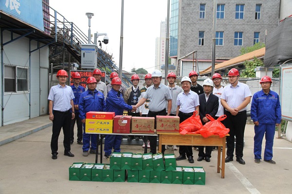 金秋送爽,丹桂飘香。9月29日上午,公司副总经理张新煜、总经济师姚胜强一行分别到一分公司元氏县医院项目部、四分公司宁晋善水荣园项目部慰问奋战在一线的施工人员,公司质量技术部部长陈增顺、宣传部部长张成及分公司有关人员一同参加。